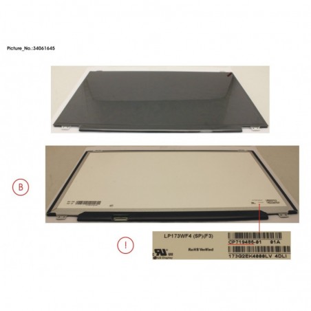 34061645 - LCD PANEL LGD AG, LP173WF4-SPF3 (FHD)